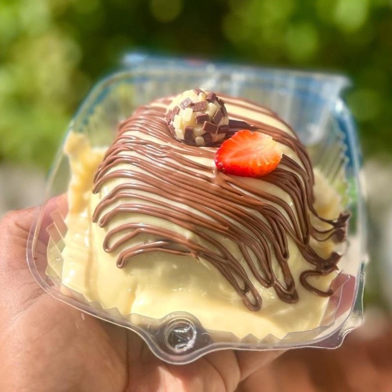 Massa de Chocolate, brigadeiro cremoso de Chocolate e finalizado com Granulé de chocolate ao leite.