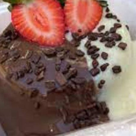 massa de chocolate,geleia de morango no meio brigadeiro e ganule.
