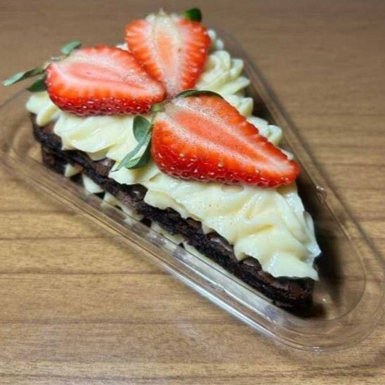 Fatia De Brownie Com Cobertura De Ninho Com Morango Ou Ninho Com Nutella