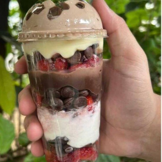 Pura Tentação Em Cada Colherada Com Morangos Picados, Raspas De Chocolate Nobre,creme De Ninho E Um Delicioso Brigadeiro Cremoso