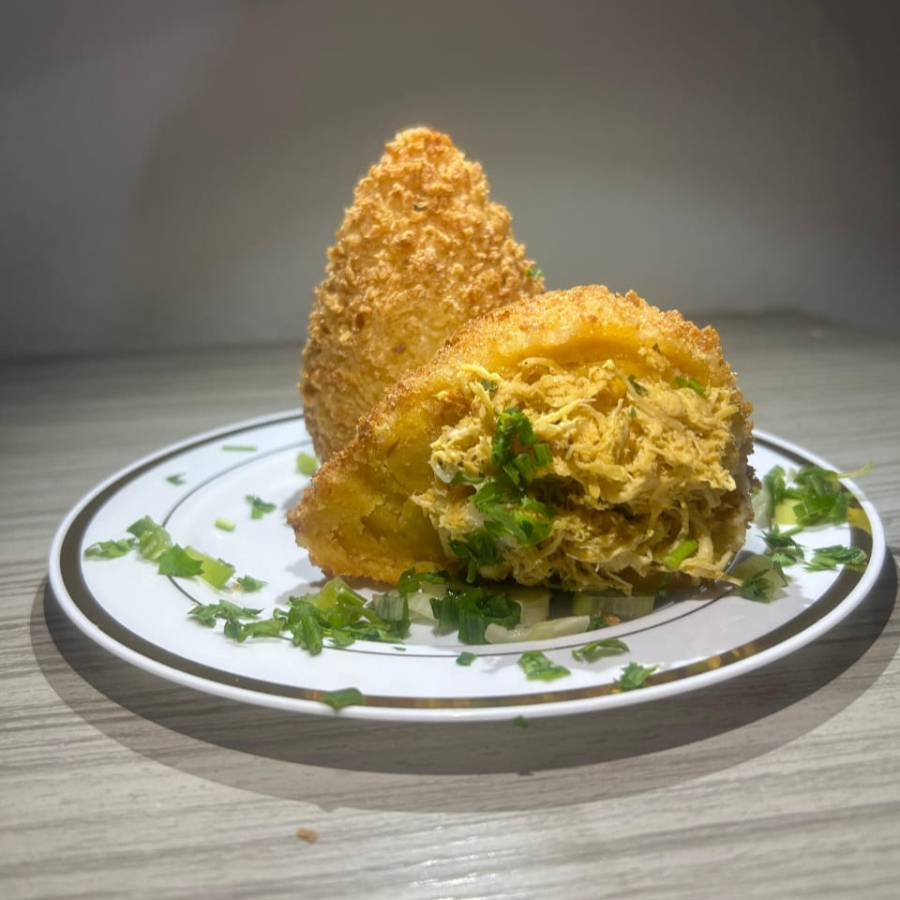 Coxinha crocante tradicional (frango) coca tradicional com uma tortinha de limao