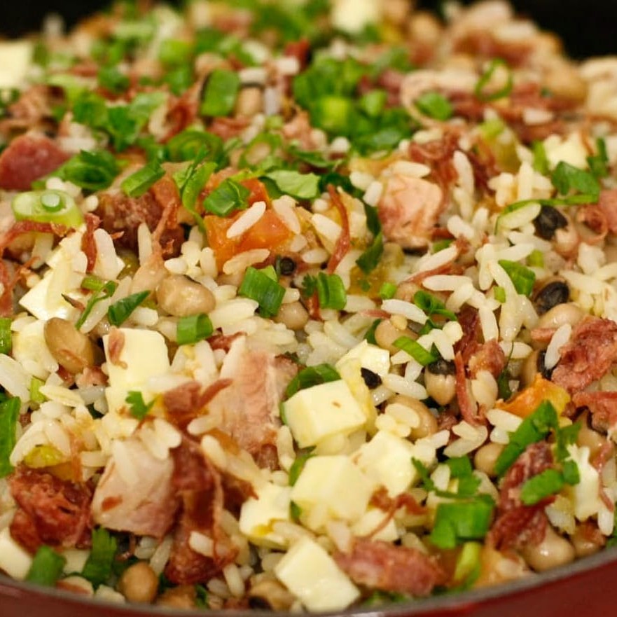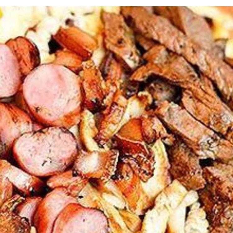 Baião de Dois acompanhado de churrasco misto, fritas e salada. Indicado para até 2 pessoas