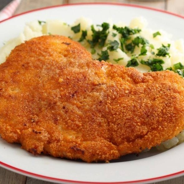 Arroz, feijão, macarrão, farofa, filé de frango empanado. Escolha mais dois acompanhamentos. Uma opção leve e saborosa, ideal para quem busca uma refeição saudável.