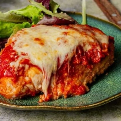 Marmita com arroz, feijão, macarrão, farofa, peito de frango à parmegiana. Escolha até dois acompanhamentos.