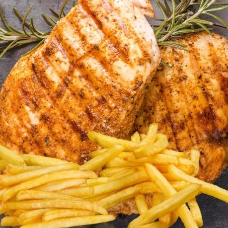 Marmita de Filé de frango grelhado com arroz, feijão, macarrão, farofa . Podendo escolher mais dois itens