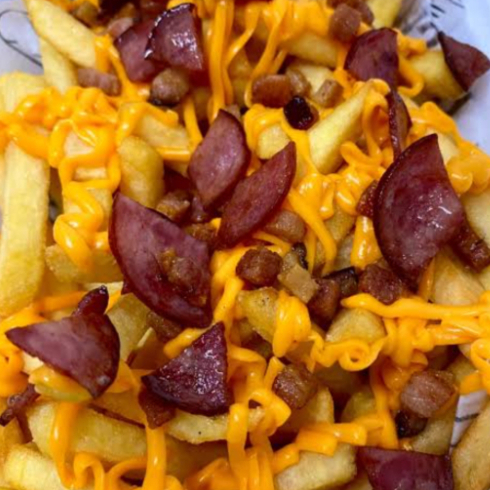 Batata frita sequinha, com bacon, calabresa, cheddar e catupiry. Aprox: 400gr