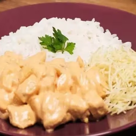 Refeição Strogonoff de Frango. Arroz , Strogonoff e batata palha.