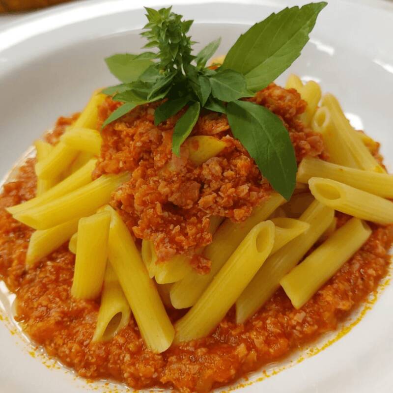 Macarrão espaguete á bolonhesa , carne moída suculenta , bem temperada ao molho.