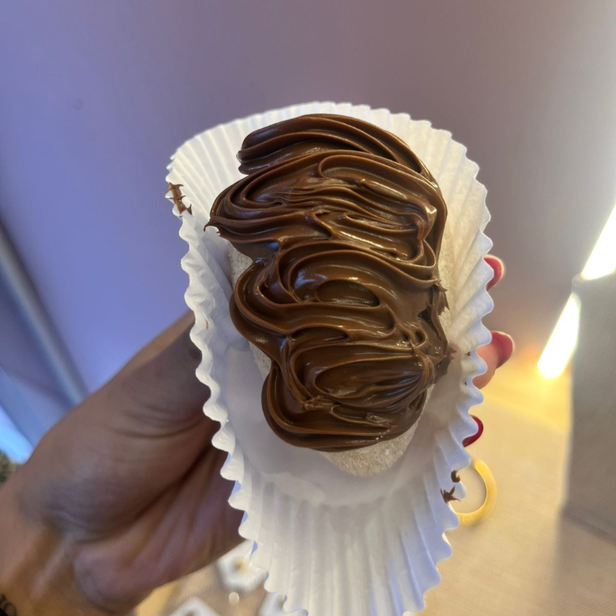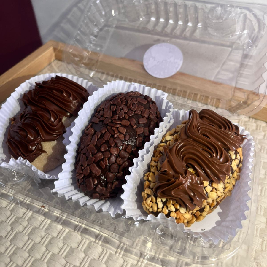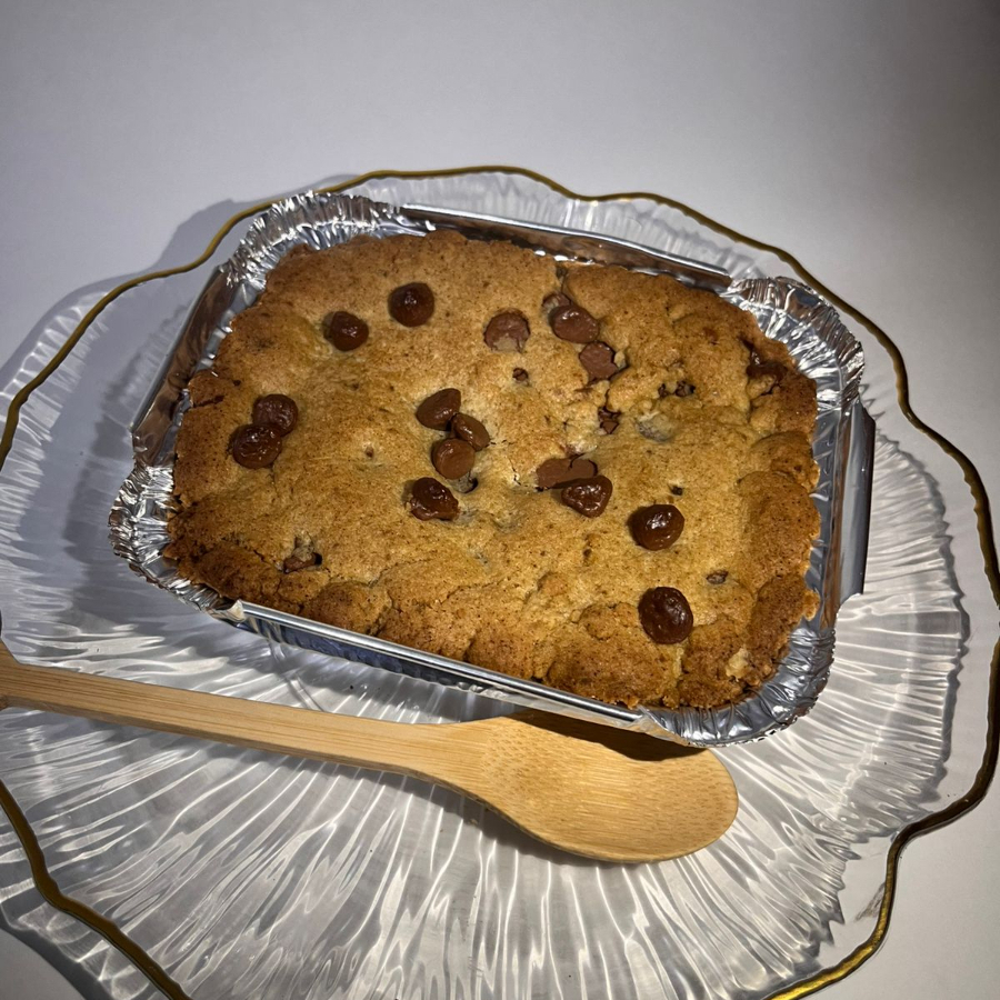 Delicioso brownie molhadinho com pedaços de cookies crocantes e gotas de chocolate com Nutella.