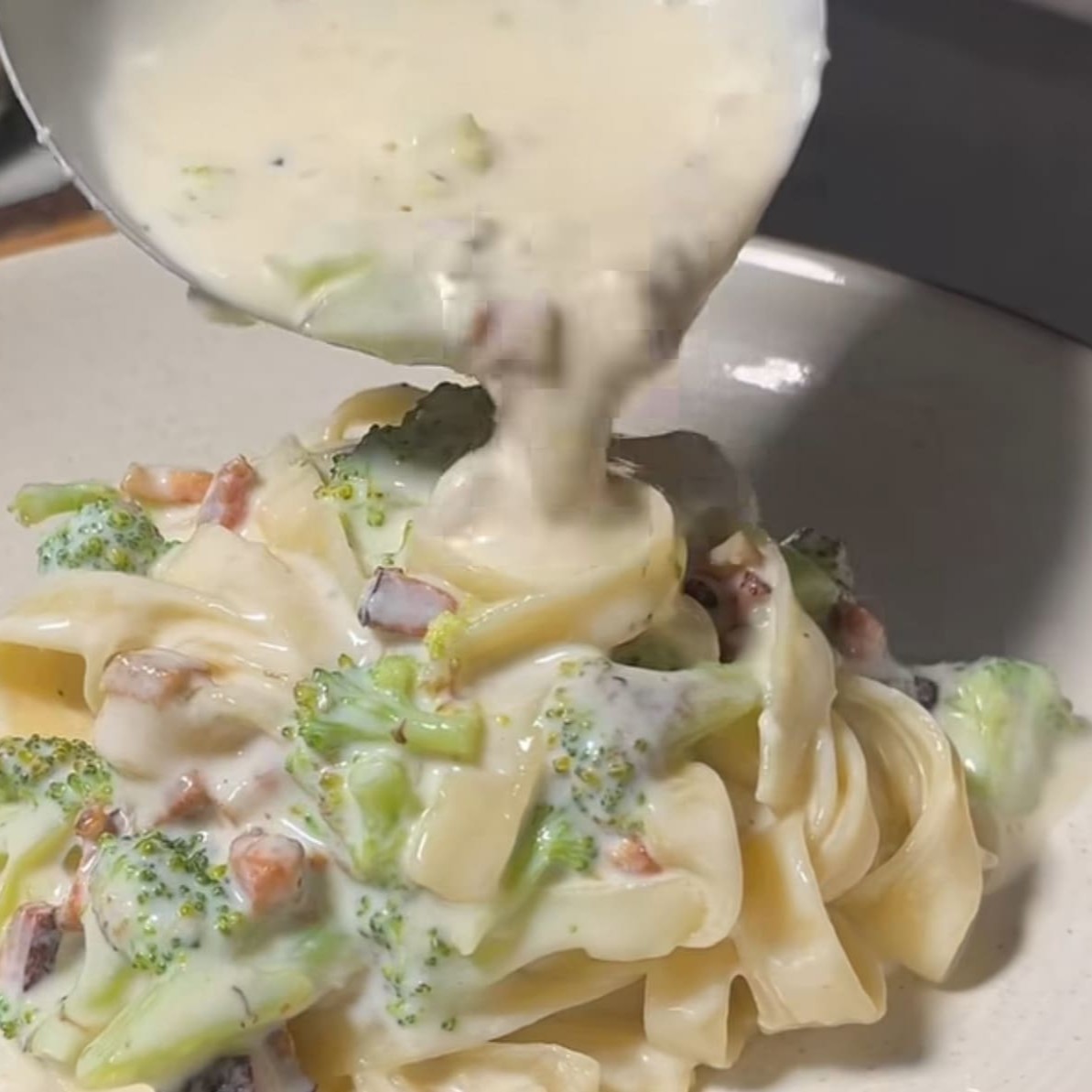 Macarrão De Brócolis, Molho Branco, Presunto, Bacon, Queijo E Espaguete