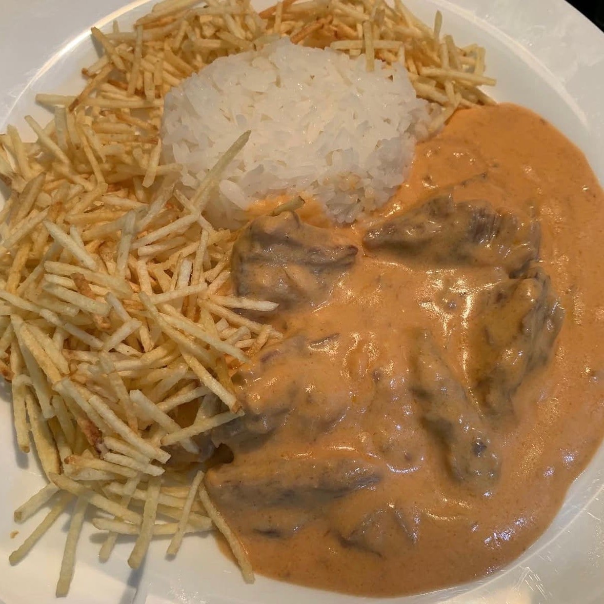 Strgonoff De Carne + Arroz + Batata Palha Ou Frita