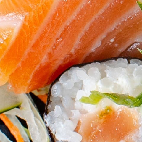 20 lâminas finas de salmão, atum ou peixe branco ao molho teriaky ou de maracujá