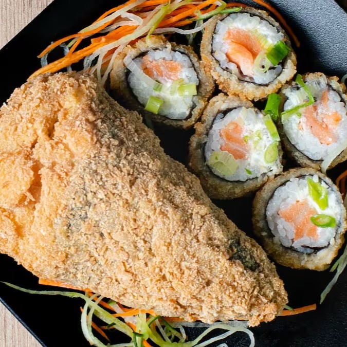 Delicie-se com a nossa seleção especial: '12 Hot Crocante de Peixe Branco + 12 Hot Crocante de Skin'. Este prato é uma experiência gastronômica inesquecível, oferecendo o sabor delicado e suave do peixe branco, envolto em uma crosta irresistivelmente crocante. Acompanham 12 Hot Crocantes de Skin, que apresentam uma textura perfeita e um sabor profundo e rico. Esta é a opção ideal para quem busca saborear os clássicos da culinária oriental com um toque de sofisticação e inovação. Uma aposta segura na nossa categoria 'Hot Crocante Mais Barato'.
