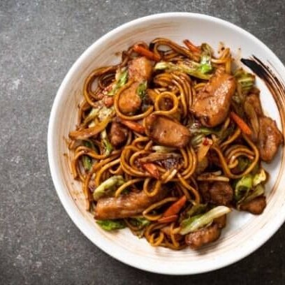 Delicioso yakisoba com pedaços de frango grelhado, legumes refogados e molho especial da casa. Escolha o tamanho :d
