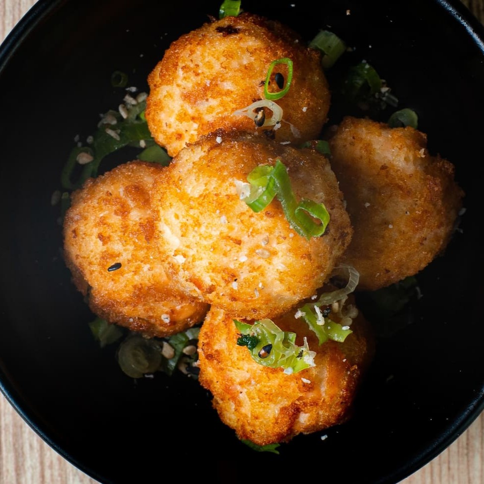 Cubos de salmão fritos e empanados na farinha panko - 4 unids.