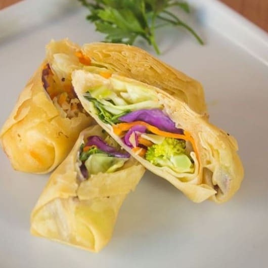 Nosso Rolinho Primavera de Legumes, uma entrada requintada, é meticulosamente preparado com uma fina e crocante massa de harumaki. Este rolinho é sumptuosamente recheado com cenoura e uma combinação de repolho roxo e verde, proporcionando uma explosão de sabores frescos. O prato é habilmente temperado com shoyu, um toque de óleo de gergelim, hondashi e ajinomoto, criando um equilíbrio perfeito entre o sabor umami e o frescor dos legumes. Uma iguaria irresistível para começar sua refeição!