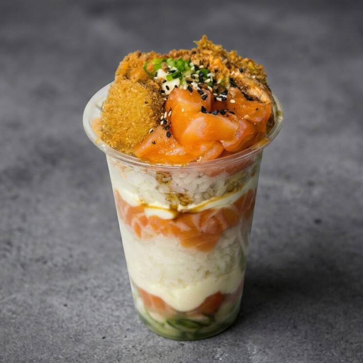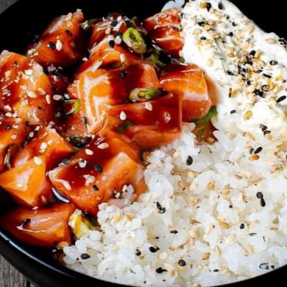 Esta entrada, o Poke de Salmão, é uma verdadeira delícia que transporta seu paladar diretamente para a culinária havaiana. Composta por suculentos cubos de salmão fresco ao molho teriyaki, que proporcionam uma explosão de sabor. O prato é complementado com a cremosidade do cream cheese, que harmoniza perfeitamente com a textura do grão de arroz temperado. Além disso, os toques finais ficam por conta do gergelim, adicionando uma crocância inigualável, e da cebolinha fresca, que traz um sabor agridoce surpreendente. Uma entrada imperdível para os amantes de frutos do mar.