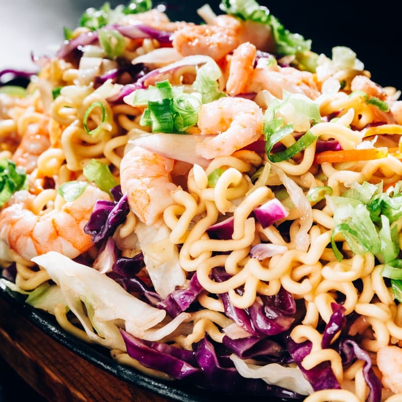 O nosso 'Yakissoba Camarão' é uma deliciosa combinação do sabor marcante do camarão com a leveza dos vegetais frescos. A massa para yakissoba, perfeitamente cozida, é envolvida por uma mistura vibrante de repolho roxo e verde, cenoura e acelga, todos salteados no autêntico molho shoyu. O toque especial fica por conta do tonkatsu e do hondashi, realçados pelo inconfundível sabor do óleo de gergelim. O alho e o brócolis adicionam uma camada extra de sabor, resultando em um prato que é um verdadeiro deleite para o paladar. Este prato serve uma pessoa.