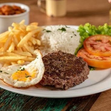 O 'Bife à Cavalo', perfeito para os amantes de carne, é uma deliciosa combinação de elementos simples e saborosos. Composto por um suculento bife de alta qualidade, coroado com um ovo frito dourado e perfeitamente cozido. Acompanha uma porção generosa de arroz soltinho e feijão caseiro, cozidos lentamente para extrair todo o sabor. Além disso, o prato ainda oferece a possibilidade de adicionar um complemento à sua escolha, permitindo personalizar sua experiência gastronômica. Uma refeição completa e robusta, cheia de sabor e tradição.