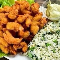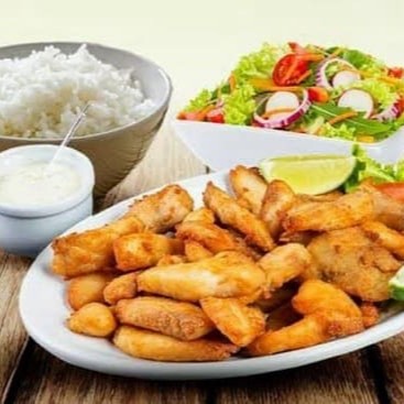Tiras De File De Peixe Empanado + Arroz+ Feijão + Batata Frita +salada