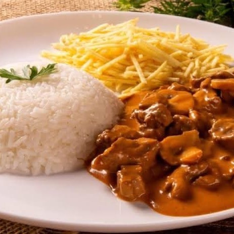 Cremoso e temperadinho do jeito que você merece. Composto por arroz - strogonoff - batata palha e salada