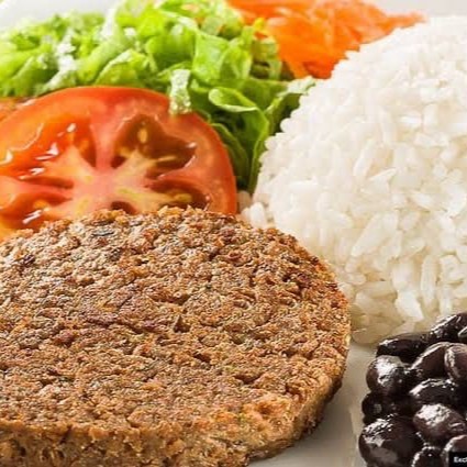Aquela combinação que nunca sai de moda arroz - feijão - 1 hamburguer e 1 ovo - salada de alface e farofa embalagem de 900 ml ou 1.200
