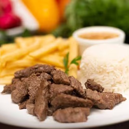 Composto por arroz - feijão - tirinhas fritas de coração da alcatra + acompanhamento a sua escolha
