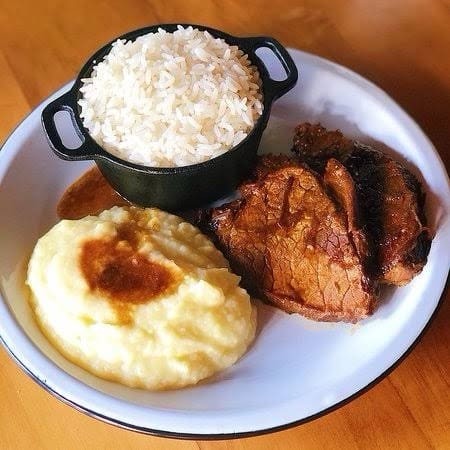 2 pedaços de Carne Assada com arroz branco - feijão + purê de batata e couve