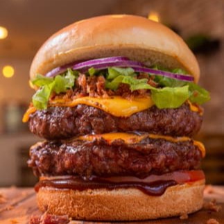 Campeão De Vendas !!! 2 Burguer Artesanal De120g Feitos Na Brasa, Com Cheddar Fatiado, Fatias De Bacon Crocante, Molho Barbecue, Alface, Tomate E Cebola Roxa No Pão Brioche. Acompanha Maionese Da Casa.