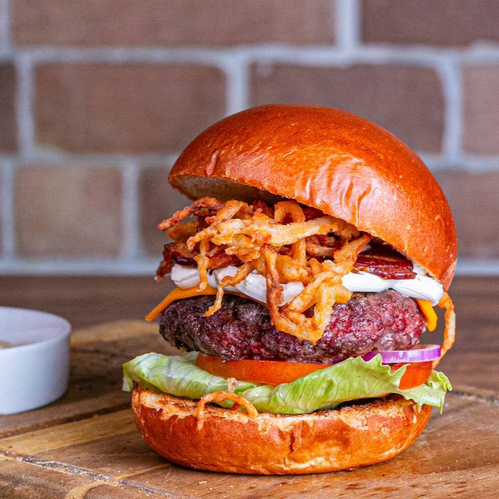 Experimente O Incrivel Sabor Da Cebola Crispy, Acompanhada Do Nosso Burguer Feito Na Brasa, Creme Cheese, Alface Americana, Tomate E Cebola Roxa No Pão Brioche.
