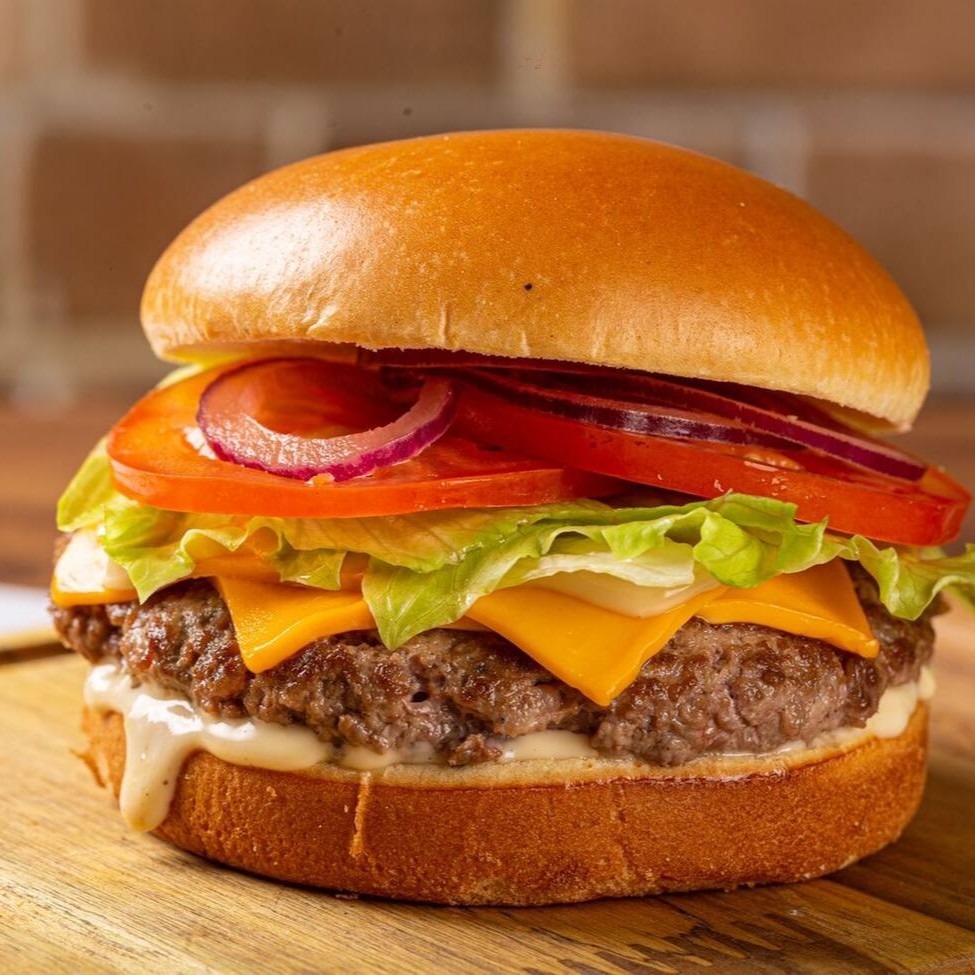 Burguer Artesanal De120g Feitos Na Brasa, Com Cheddar Fatiado, Maionese da casa, No Pão Brioche.