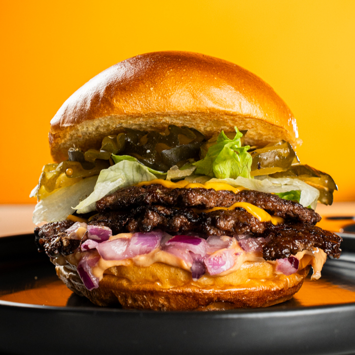 Pão brioche, 2 blends de smash 80g, cebola, picles, alface e molho especial