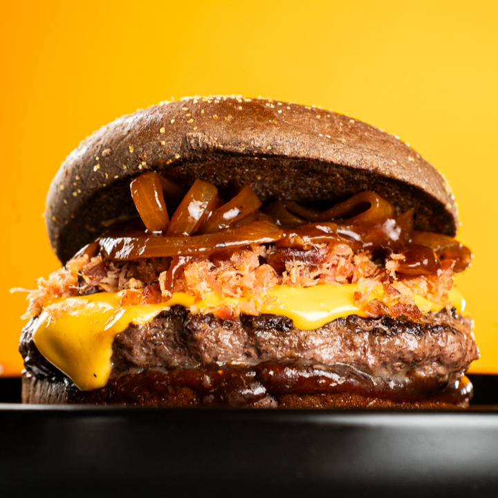 Para os amantes de cheddar on-line! Pão australiano, blend bovino 150gr, creme de cheddar feito na casa, farofa de bacon, cebola caramelizada e barbecue.