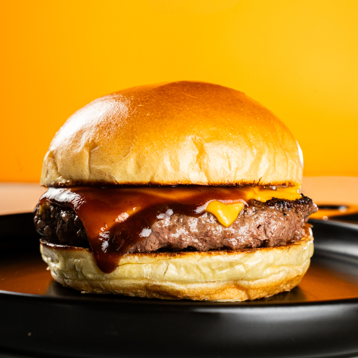 Blend de 150gr, pão brioche, queijo cheddar derretido e catchup.