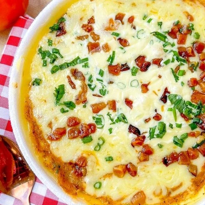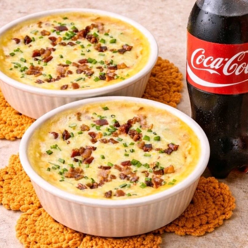Batata Cozida, Recheada Com Pedaços De Bacon Frito e Brocolis Ao Molho Branco. Fechamento: Mussarela Derretida, Requeijão, Bacon, Cebolinha