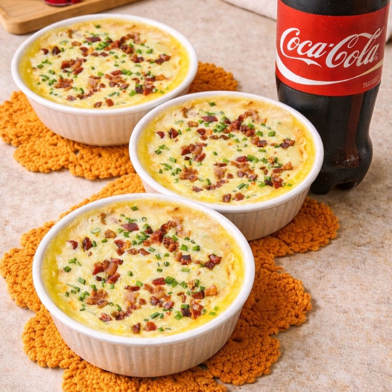 Batata recheada ,com brócolis e bacon ao Molho Branco. Fechamento: Mussarela Derretida, Requeijão, Bacon, Cebolinha
