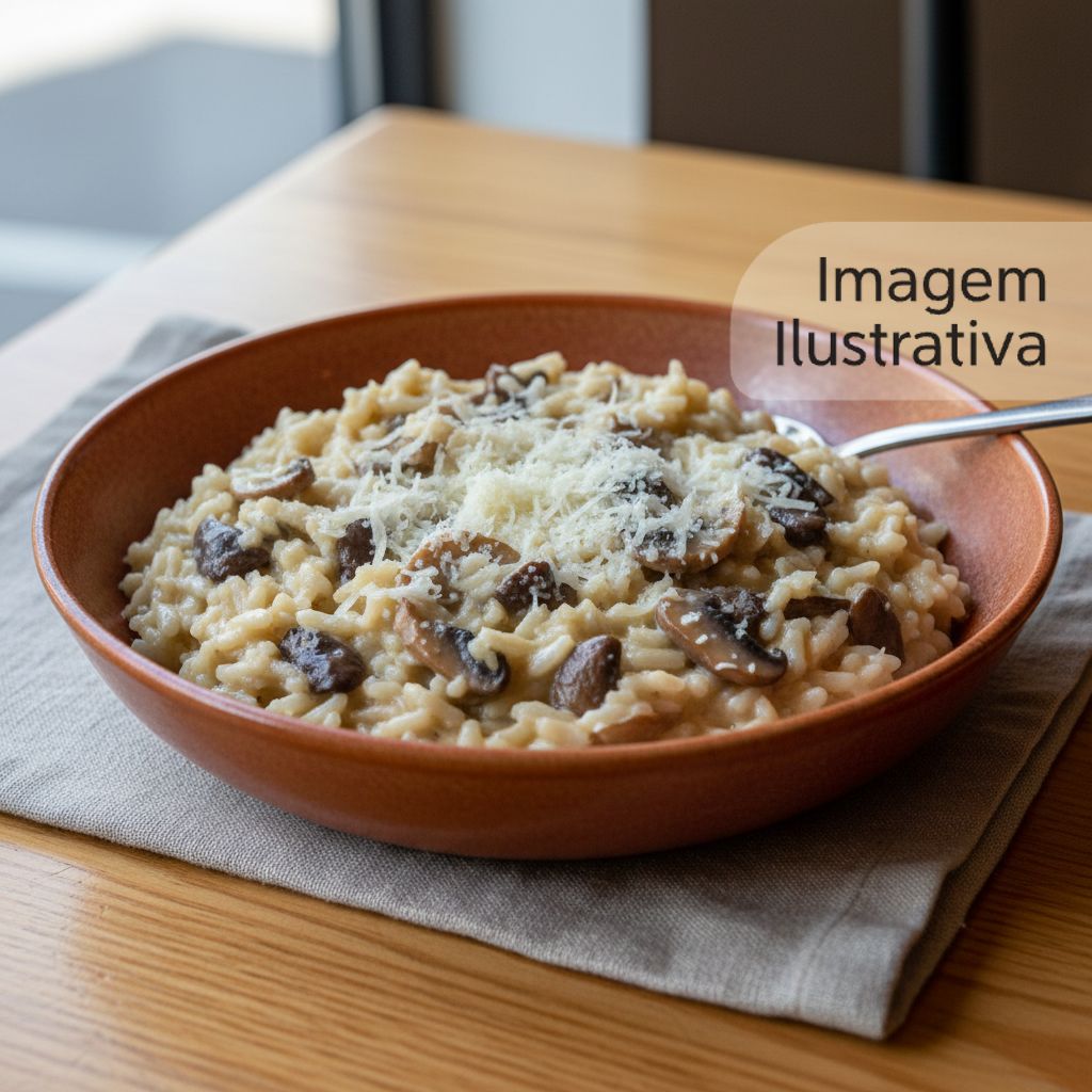 Um prato elegante e sofisticado, que promete enaltecer o seu paladar. Este Risotto é delicadamente preparado com os mais frescos cogumelos, cuidadosamente selecionados pelo nosso chef. Seu sabor é realçado pela cremosidade do arroz italiano, cozido lentamente para garantir a textura perfeita. O prato ainda é finalizado com uma generosa porção de queijo parmesão ralado, que adiciona um toque sutilm