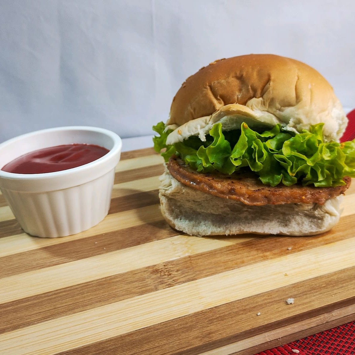 Pão, Hambúrguer, Alface, Maionese, Ketchup, Mostarda e Batata Palha