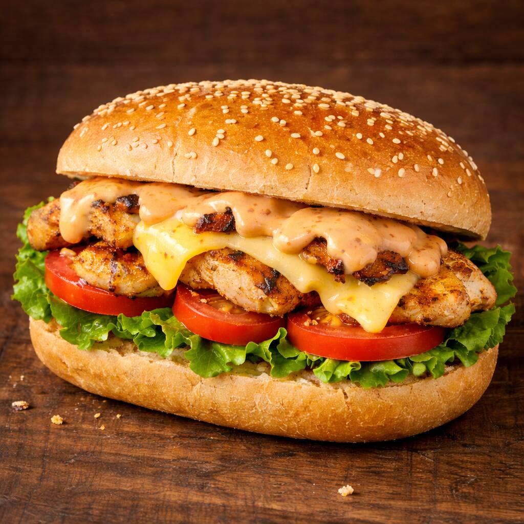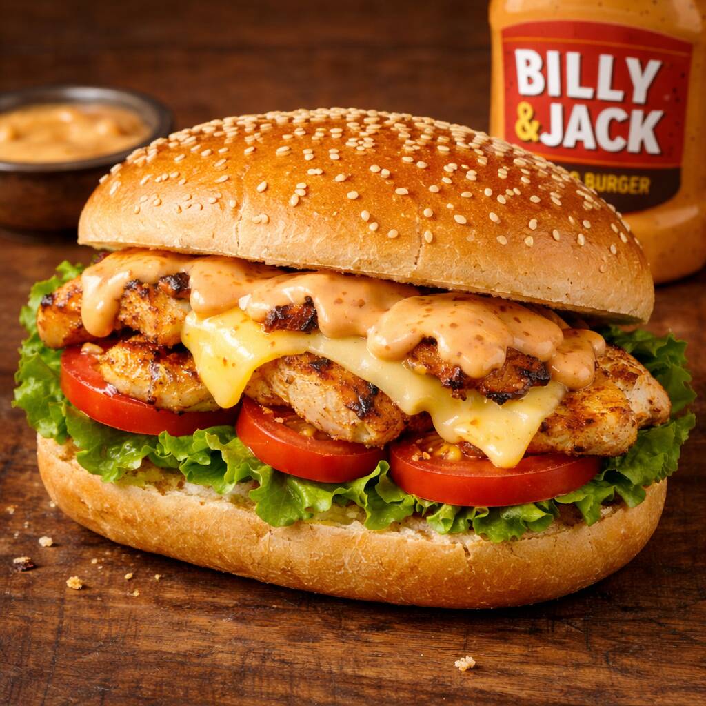 Pão de Corte, Filé de Frango, Queijo, Alface, Tomate, Molho Billy & Jack