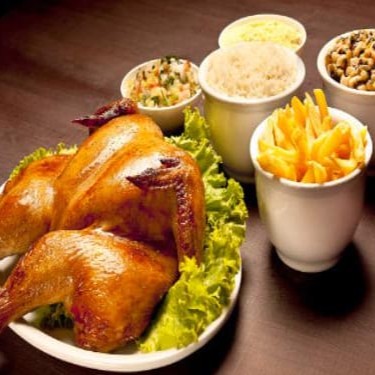 Nosso delicioso Galeto Acompanhado de 1 porção de arroz, 1 linguiça toscana, 1 pote de vinagrete, 1 pote de Farofa, 1 porção de batata rústica, 1 pote de salpicão e 1 refri 2l (Flexa guaraná)