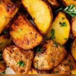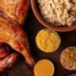 Nosso Delicioso combo de Galeto assado acompanhado de batata rústica e 1 porção (p) de farofa.