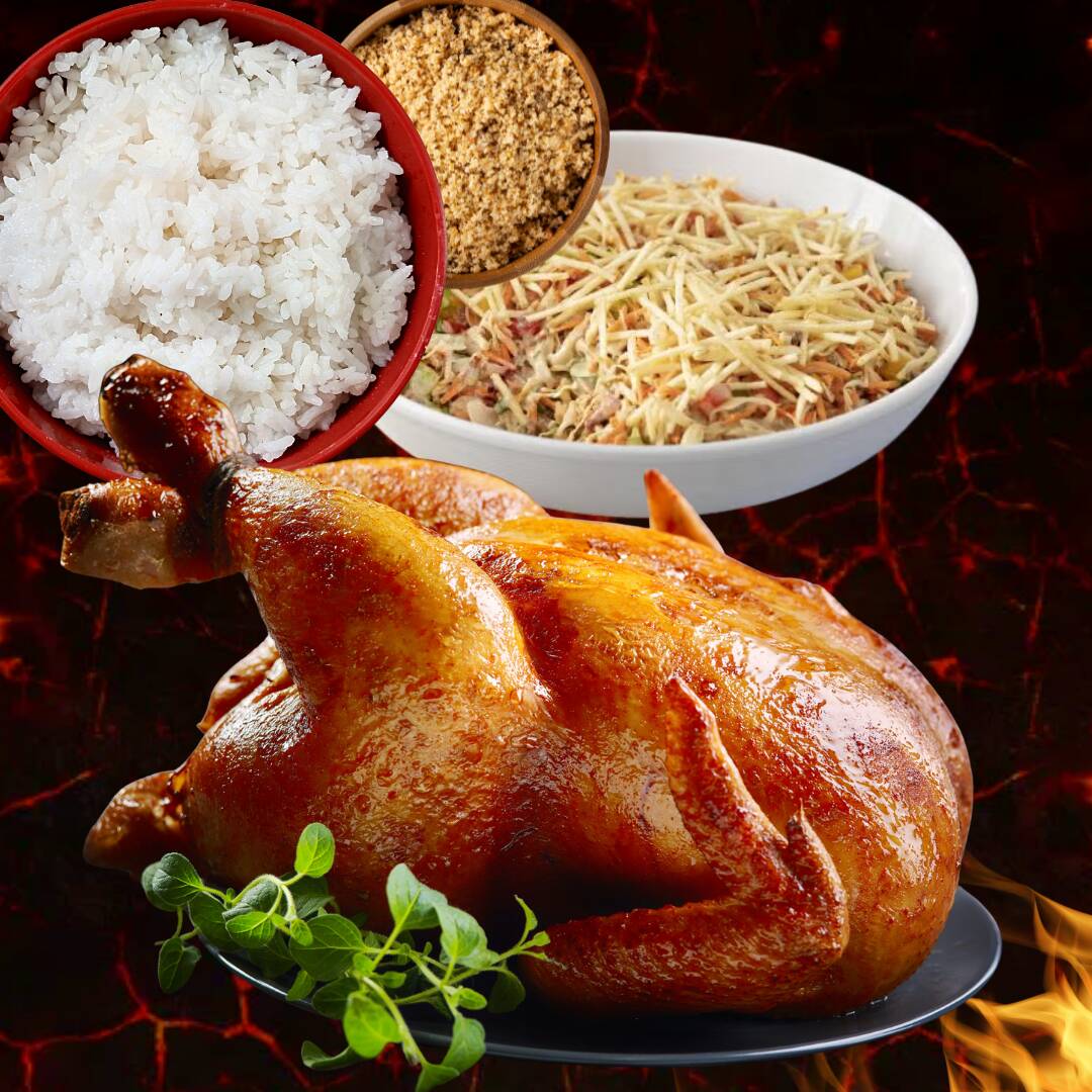 Nosso delícioso galeto assado acompanhado de Aipim frito e Farofa.