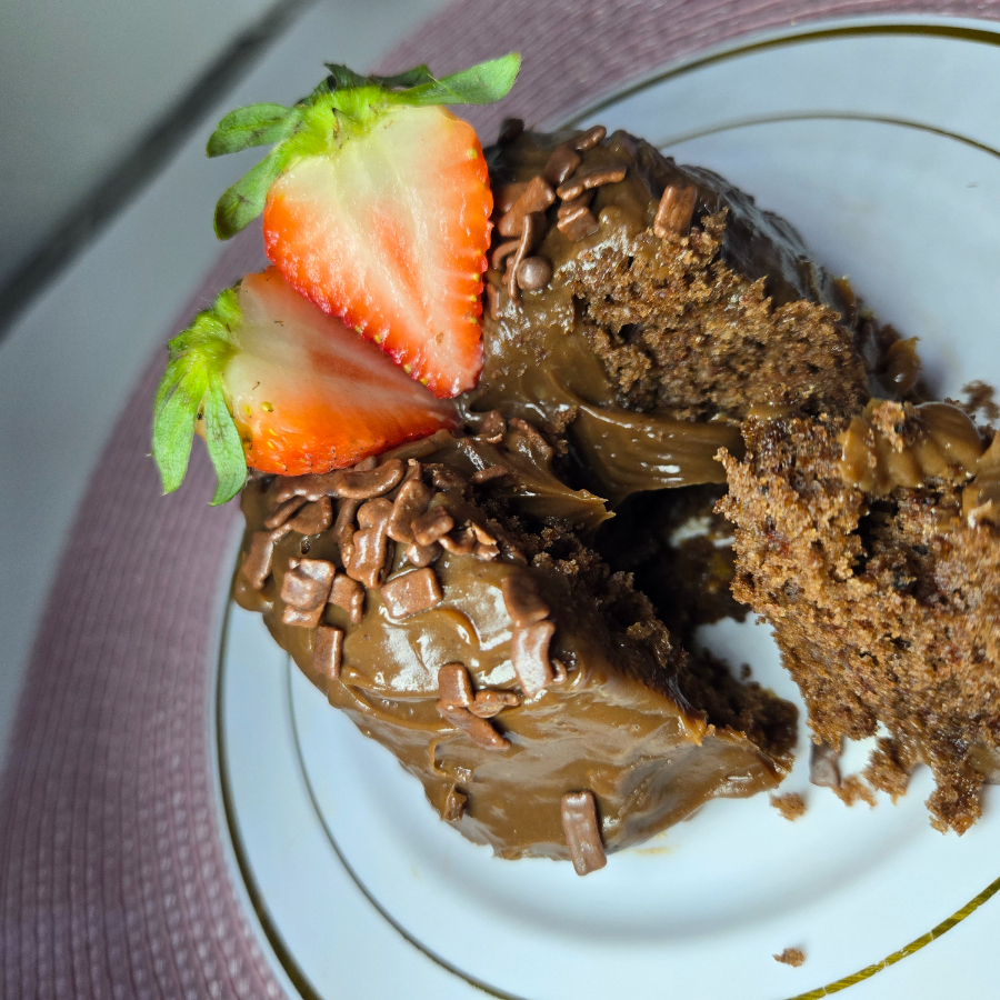 Bolo de chocolate bem fofinho com brigadeiro 50% cacau
