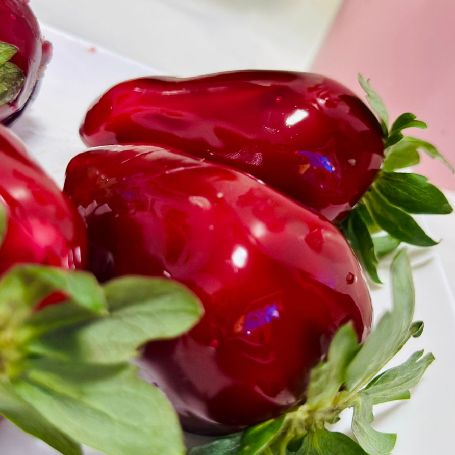Um perfeito morango do amor, com a casquinha fininha no ponto certo, um brigadeiro de ninho e morango selecionado.