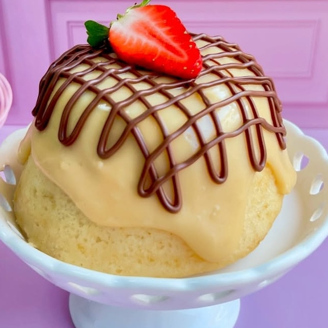 Massa de baunilha fofinha, recheada com brigadeiro de ninho e pedaços de morangos