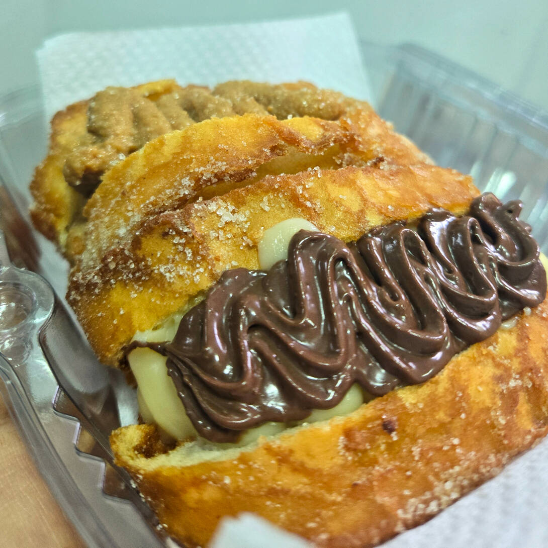 Massa crocante por fora e macia por dentro, rechada com nutella e gotas de chocolate.