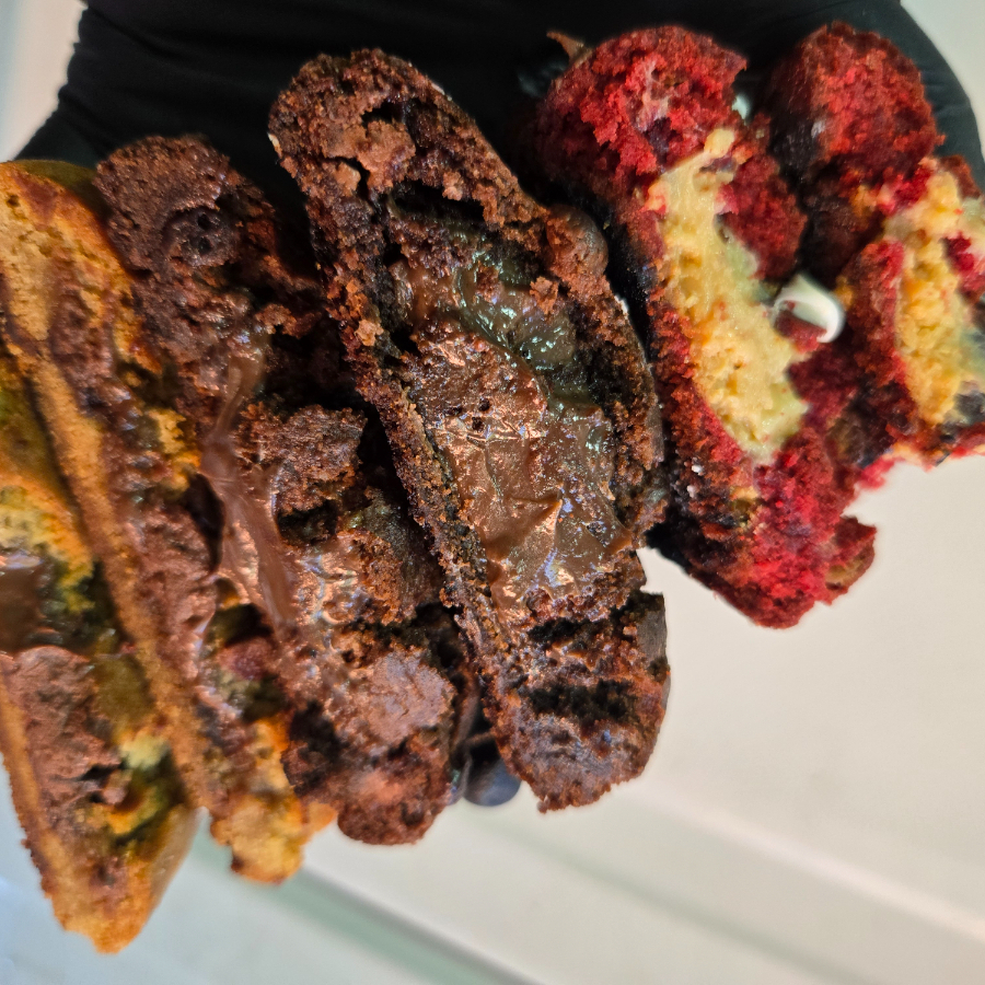 O mais novo queridinho, um cookie recehado com creme bueno, e finalizado com bombom kinder.