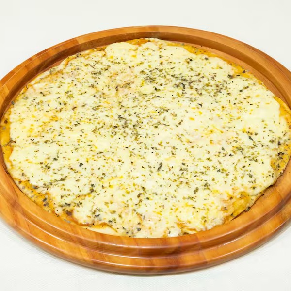 Pizza de Mussarela, serve 6 fatias.