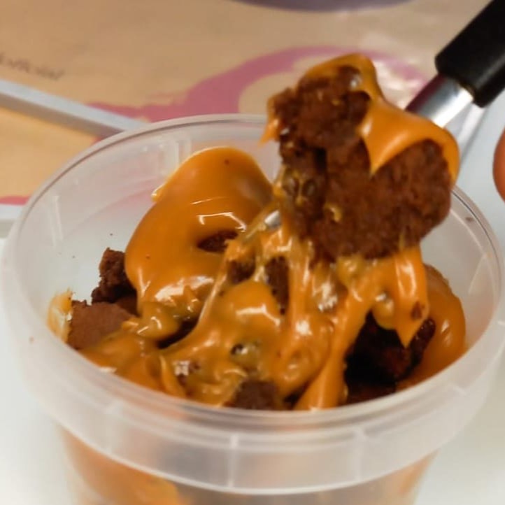Brownie in Box - Doce de Leite, uma deliciosa combinação de lascas de brownies irresistivelmente crocantes, intercaladas com o mais autêntico doce de leite mineiro, servidas em um pote de 220ml. Estas lascas são as partes mais saborosas do brownie, aquelas bordinhas do tabuleiro que todos adoram, sabe? Um verdadeiro deleite para o seu paladar. Não perca mais tempo, peça já o seu e experimente essa explosão de sabor!