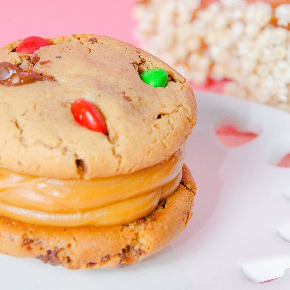 Nosso inconfundível cookie em formato de sanduíche acompanhado de muito doce de leite recheando! É de comer se lambuzando e sorrindo a toa. :D #cookiesandwich